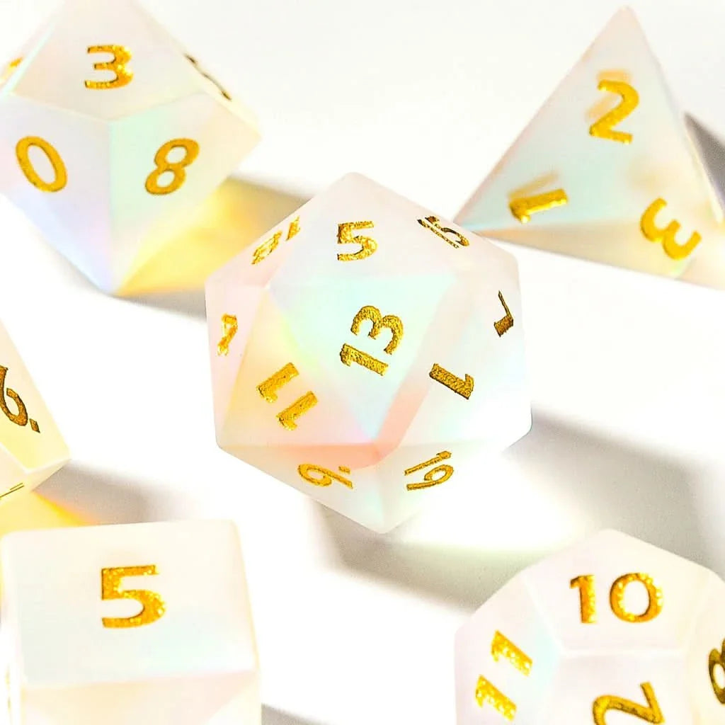 Introduce the Chromatic Haze: Dichroic Glass Dice with Matte Finish to your next DnD campaign and experience how they transform each session with their stunning beauty and magical resonance, enriching the narrative and enhancing the visual spectacle of your adventures.