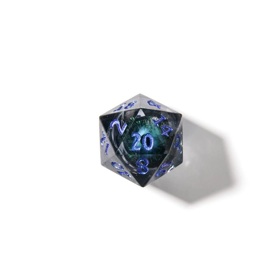 Delve into the mystical realms of Dungeons and Dragons with our Moving Eye range. This set of seven sharp-edged dice contains a mysterious secret: each die houses a liquid core where an eye forever watches, moving freely yet invariably settling with its unnerving gaze pointing upwards. Ideal for the shadowy dungeons of your next adventure, these dice add an element of the eerie to each roll.