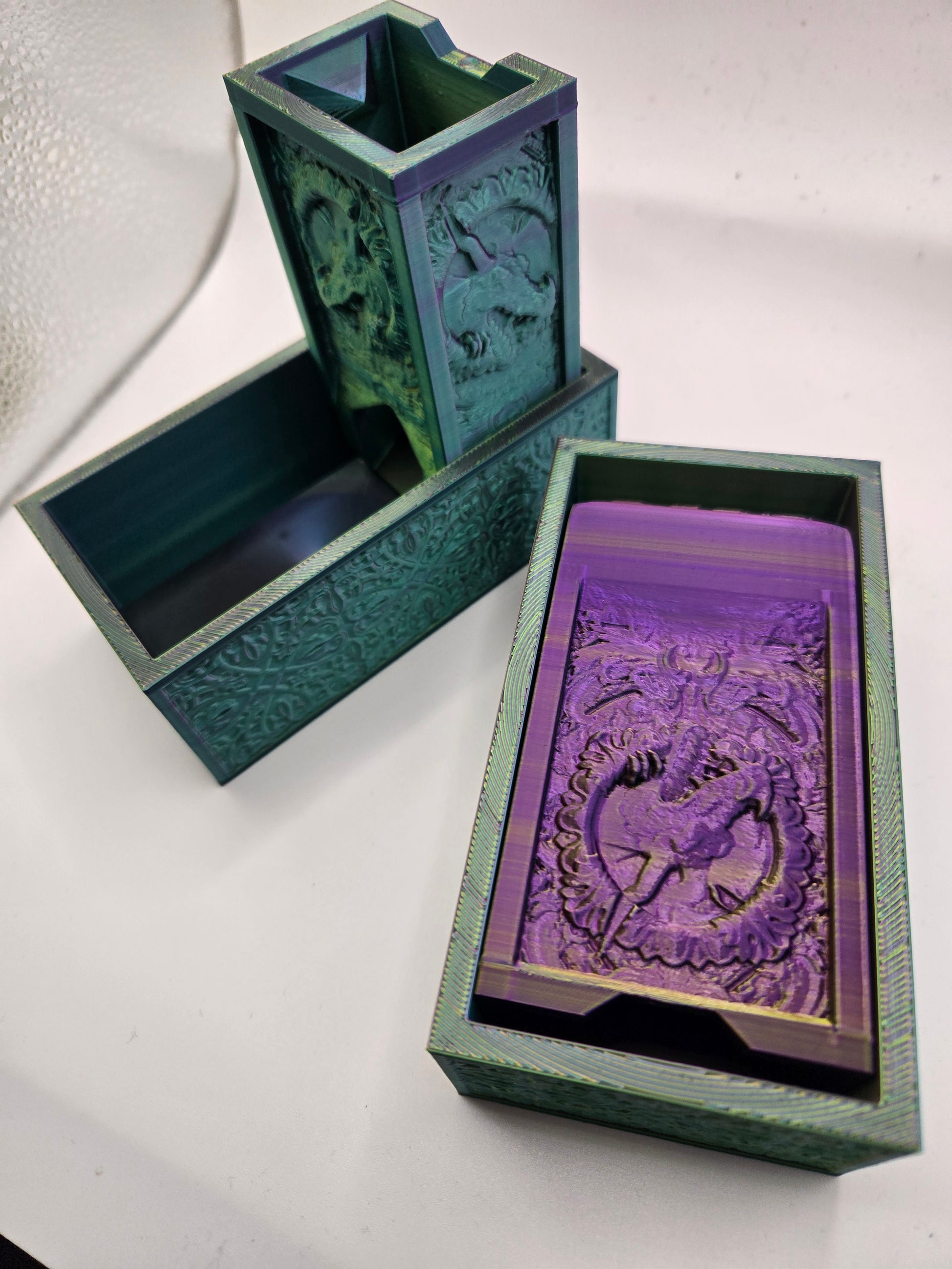 Fold out these amazing Dice towers with built in Dice tray. The detail on the boxes are amazing and look amazing open or closed. As always, when you open this up, have your friends in awe at the design you choose!
